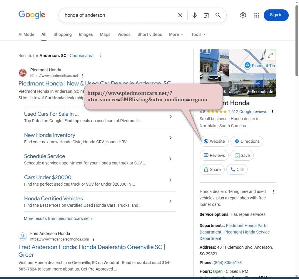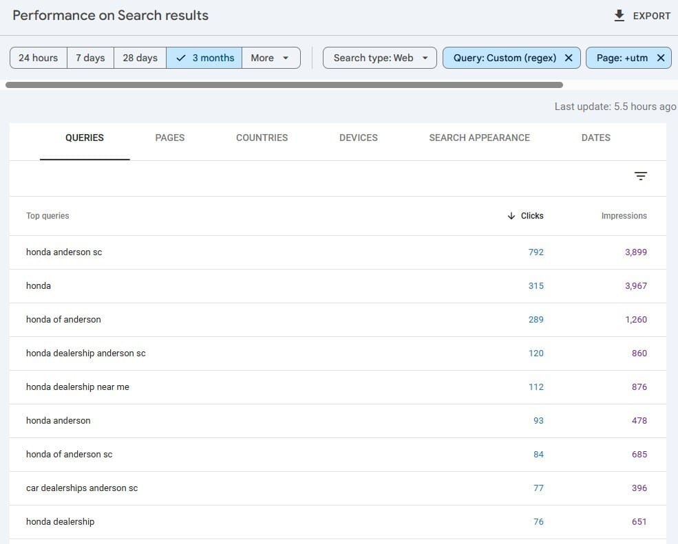 ![]() | TL;DR:Add a UTM to your Google Business Profile link. Then filter “utm” in Google Search Console to reveal the real search terms — including non-branded ones like “used cars near me” or “auto repair shop open now.” |